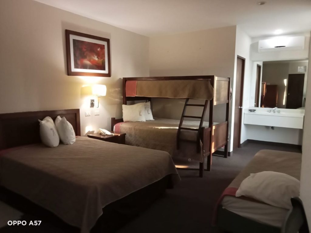 Espaciosas Habitaciones Alfombradas, Minisplit Frio/Calor, Pantalla TV de 32”, WiFi, Escritorio, Camas Matrimoniales, Caja de Seguridad , Cómodo Sofá ó Cama Individual. La Superior Plus cuenta con una cama individual extra y 2 baños completos con capacidad de hasta 6 personas y además de poder agregar con costo extra el Set de Amenidades Adicionales.